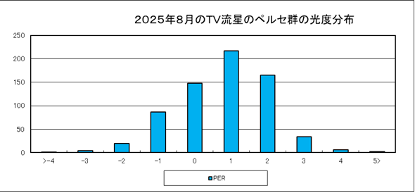 8月14日現在。8月13日0時57分4分にペルセウス群のクラスター現象が同時観測されています。1秒間近くで、ペルセウス群の流星が22個近くまとめて出現しました。現在解析中です。